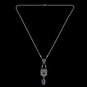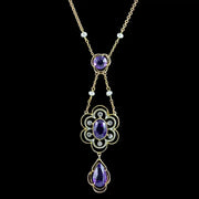 Antique Victorian Amethyst Diamond Pearl Lavaliere Necklace 15ct Gold