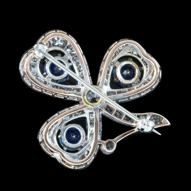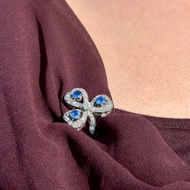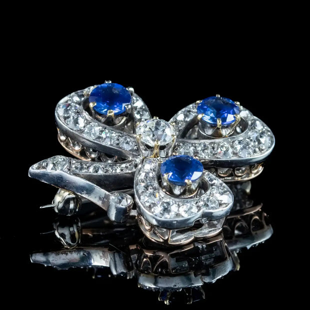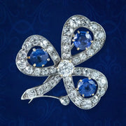 Antique Victorian Sapphire Diamond Shamrock Brooch Silver 18ct Gold