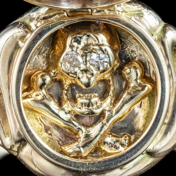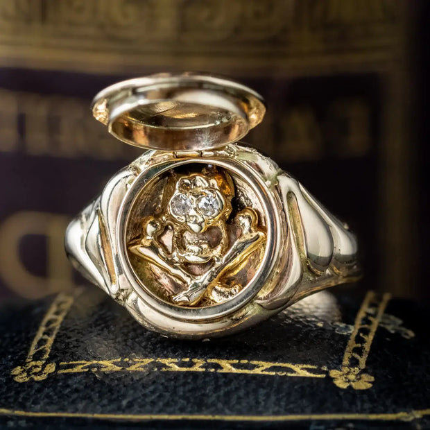 Georgian Style Memento Mori Locket Ring With Diamond Skull