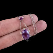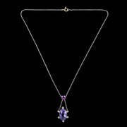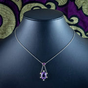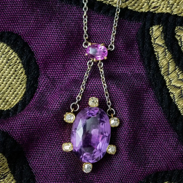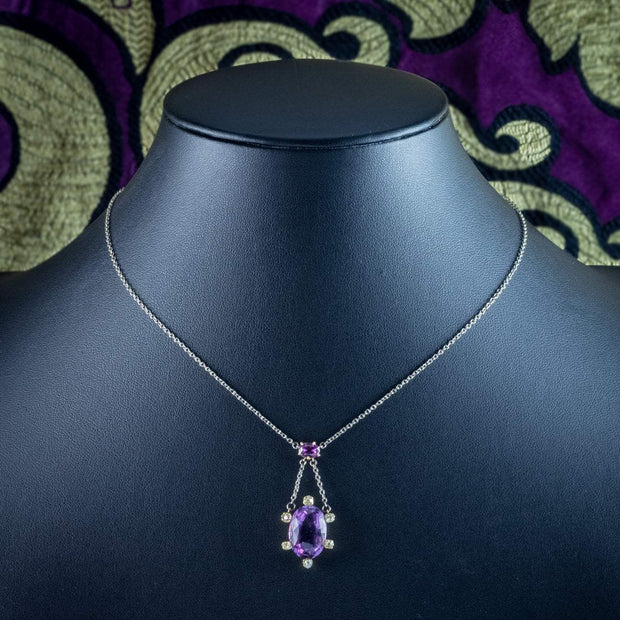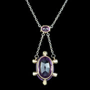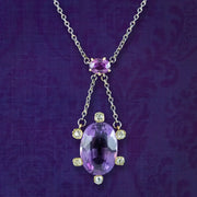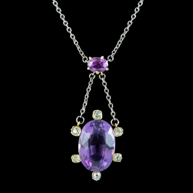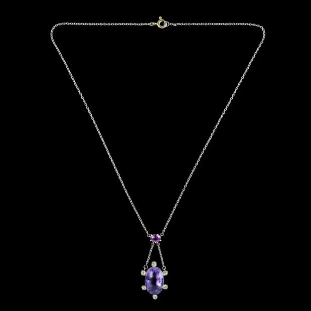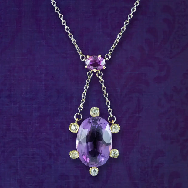 Antique Edwardian Amethyst Diamond Lavaliere Necklace 14ct Gold