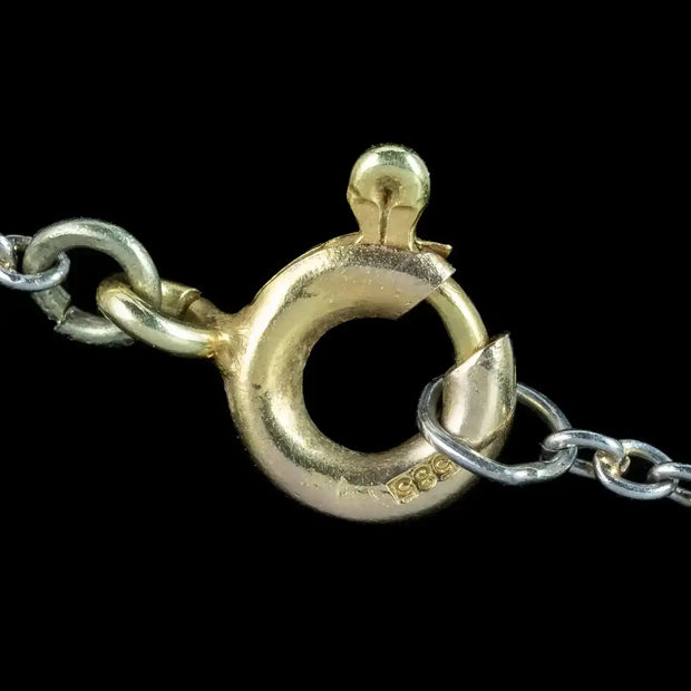 This majestic Edwardian amethyst diamond necklace dates to the early 20th Century and consists of 14ct yellow gold settings and clasp, connected by fine 14ct white gold chains. It’s perfect for special occasions or adding a touch of Edwardian elegance to your everyday attire.