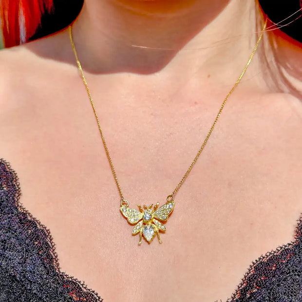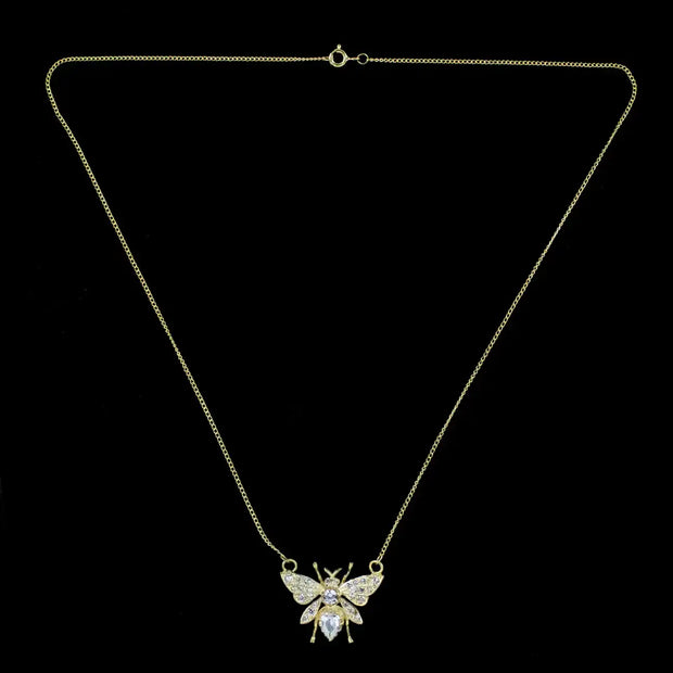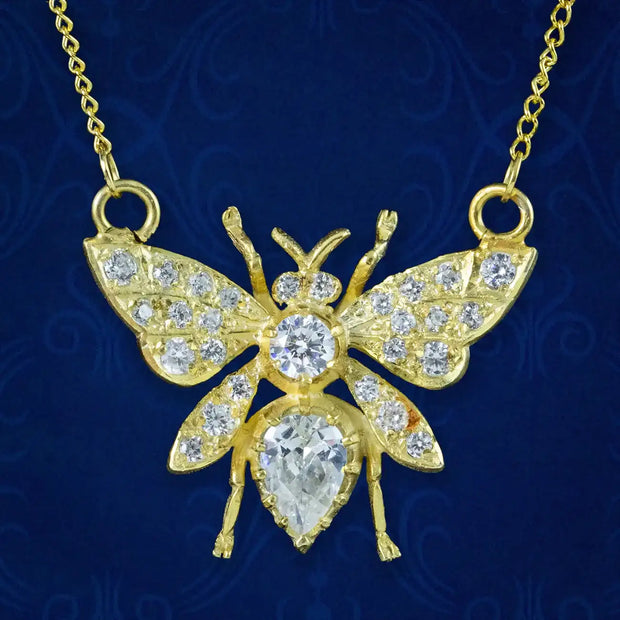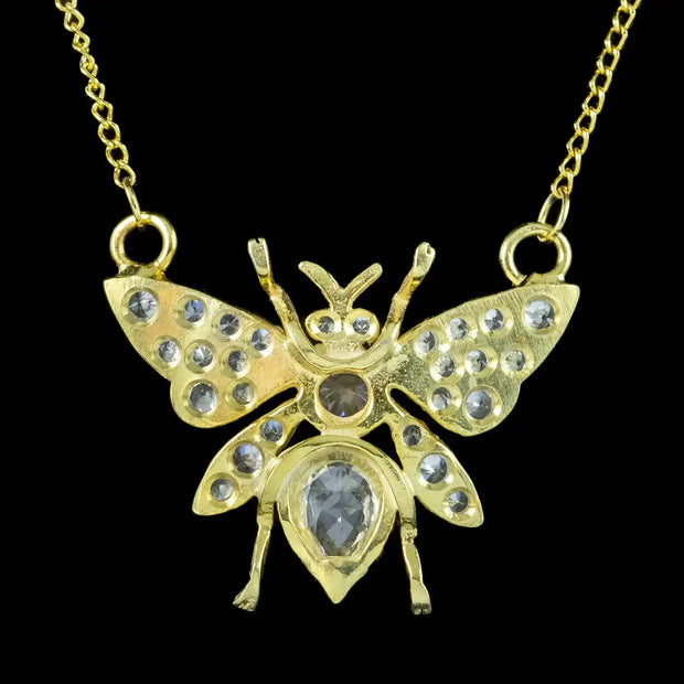 Victorian Style CZ Bee Pendant Necklace Silver 18ct Gold Gilt